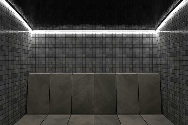 土耳其或马赛克蒸汽浴是预制小屋和建筑房间之间的一种混合模式。它使用由石棉水泥制成的挤出聚苯乙烯面板,允许用陶瓷涂层压平,其颜色和纹理可由客户选择。