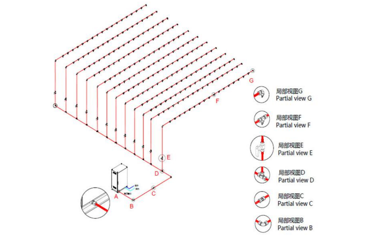 快插式管道采用耐高压尼龙管,安装简单方便,成本相对低。