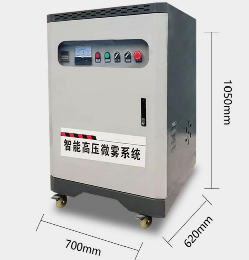 高压喷雾系统是取用过滤净化处理过的自来水进入高压造雾机主机,经造雾泵加压至50-70KG以上压力, 经由高压输水管道输送至喷雾场所,最后由结构精密的雾化喷头高速喷出,形成雾化粒子直径为5 ~ 10微米的雾气,漂浮在空气中,利用水的蒸发,降低环境空气的温度,使得环境空气在喷雾后变得清新和凉爽。
