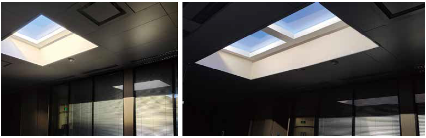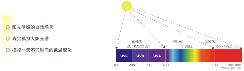 通过光电的融合能够模拟多种自然状态的光照环境,实现了LED产品与自然界多种光源光谱的高度相似。通过把视界折叠,在有限的层高中感受阳光从万里高空洒下来,同时加入不同光源&IOT增加微热感、促发维生素,不论从照度、色温、角度都还原太阳照进室内的感觉,更为贴近自然感受